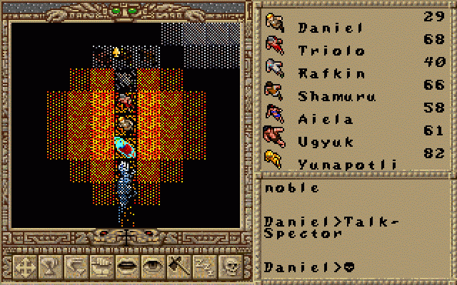 Cleese mentions Fritz, Spector's assistant, who Spector sent away when Fritz recognised his madness. Zipactriotl tells you that his force field, which makes him and Huitlapacti invulnerable, is powered by the generators in the Kotl city. And Oaxtepac tells you what you need in order to find the city - the head of a golden man (which you should pick up in the palace treasury, along with other riches) and a giant gem (which the Urali stole recently) which reveals the city entrance when placed in a device on the greatest of three mesas, far to the southwest.