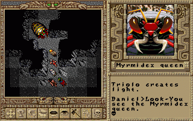 If you answer him correctly, Intanya will judge you fit to travel, and will let you go free. He will give you a companion, Triolo, and mention your friends, Rafkin and Jimmy. He will also be the first to mention the Myrmidex, but will not tell you anything beyond the fact that they are tough enemies. If you ask about your friends, he will tell you that Rafkin is with the Yolaru tribe to the east, and Jimmy is among the Disquiqui far to the south.