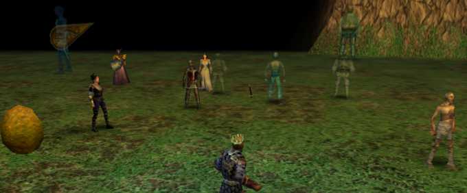 Left to right: Queen Egg, Lucian (helpful ghost from The Bastion), Raven/Pirate, Julia, Sir Robin, Raven/White dress, Malchir #1, a lever, a Pirate, Malchir #2, a Pirate (standing on Malchir #2), Bane (the Prisoner from Destard).
